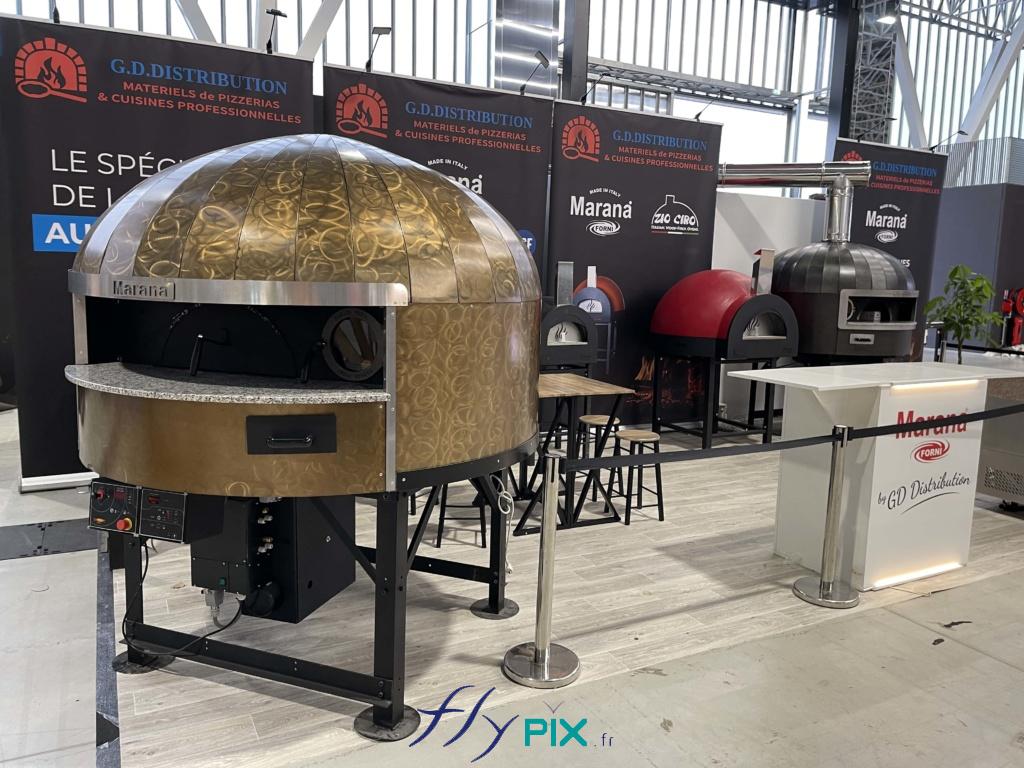 - Agence VISU, Bruxelles en Belgique : un ballon dirigeable L = 4 m suspendu , gonflé à l'air, pour un stand de salon professionnel