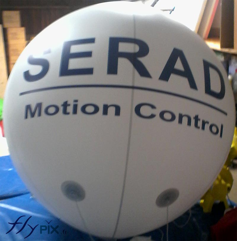 Ceci est un ballon publicitaire sphérique en PVC 0,18 mm de 2,5m de diamètre, dont le marquage du logo a été personnalisé.
